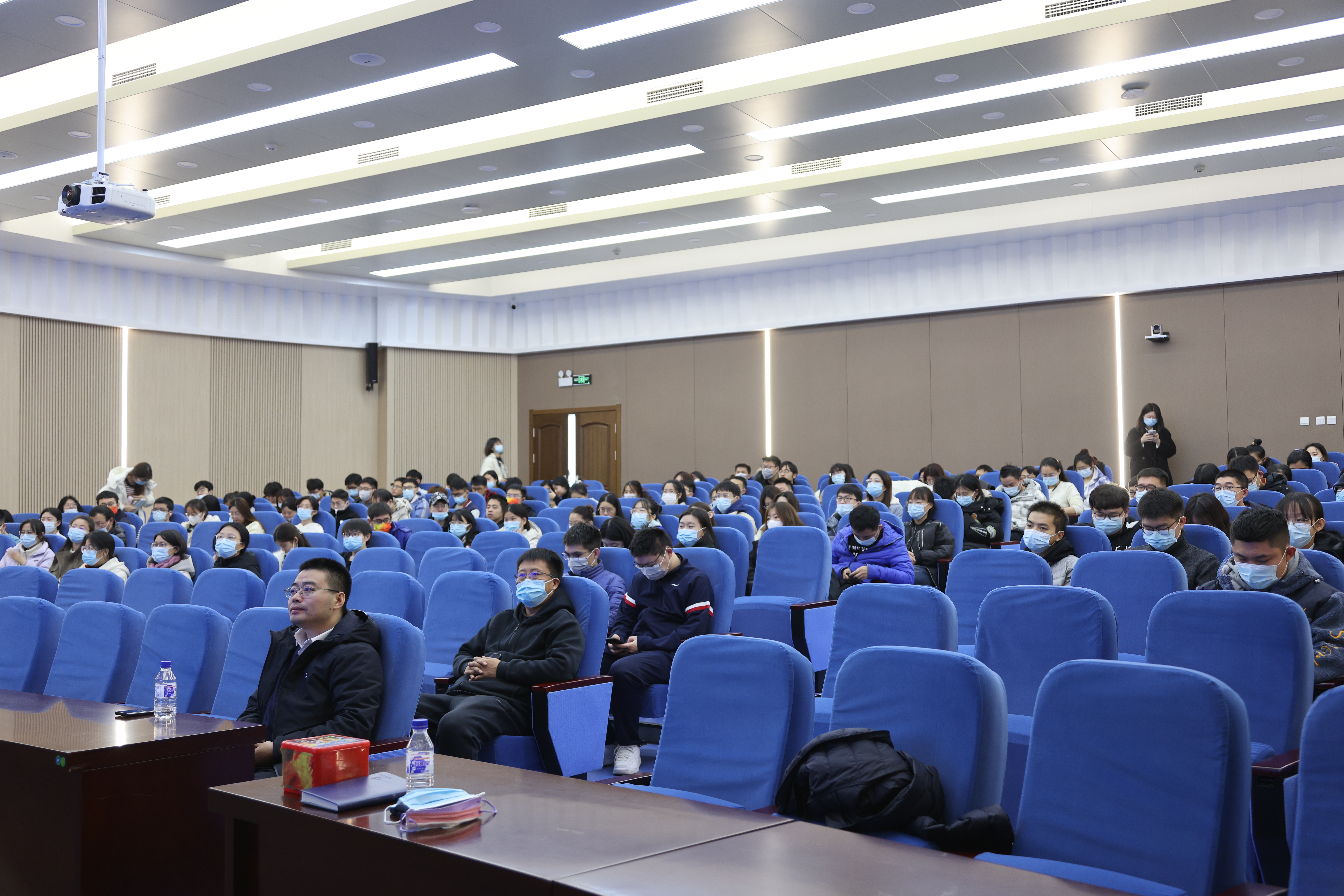 在安全知识讲座环节,保卫处消防科科长董立明以近期发生的多起大型火灾事故为例,深入浅出地向大家讲解生活中常见火灾场景的逃生方法和事故发生后的正确应对流程,进一步强调了做好消防工作的意义,全面讲解了实验室、员工公寓以及办公室的消防安全制度。在讲座环节尾声,董立明现场为大家示范灭火器的正确使用方法,再次向师生们强调发生火灾紧急撤离时的注意事项,在场师生受益匪浅。