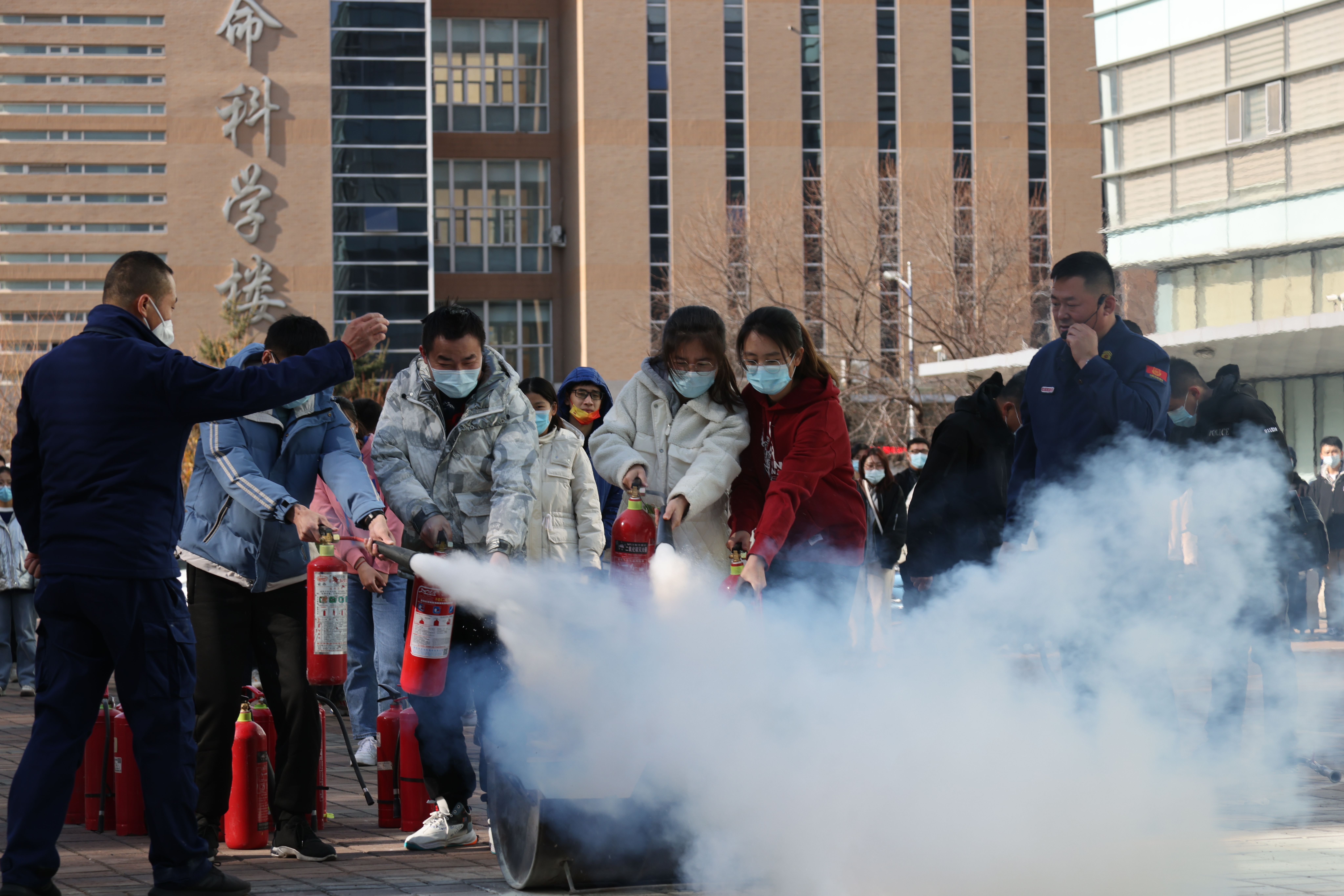 在应急疏散演练环节,演练指挥小组以模拟无机-超分子楼内突发火情为背景,全景演练了突发火情后全楼师生紧急疏散撤离、消防队员灭火等流程。演练过程中,楼内师生疏散过程井然有序,展现了快速反应的能力,演练达到了预期的目标。