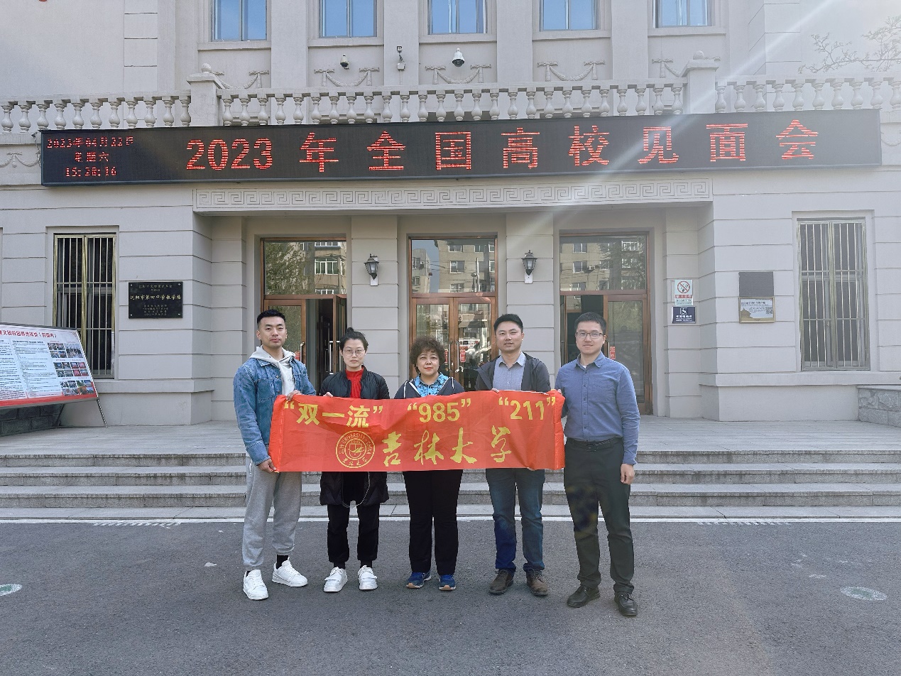 王毅副经理(中)、王洋教授(右)、武赫副教授(左)、高娜老师(左二)、蒋振彦老师(右二)在沈阳四中