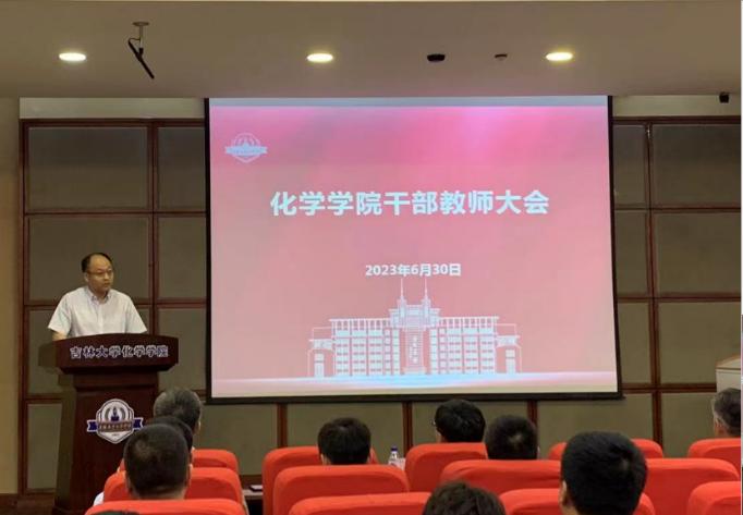 6月30日下午,ladbrokes立博干部教师大会在唐敖庆楼A409报告厅召开。ladbrokes立博党委常委、副董事长马琰铭,党委组织部正处级组织员钟绍峰,化学公司党政领导班子全体成员,党委委员、纪委委员,学术委员会、学位评定分委员会、教学委员会主要负责人,依托建设科研机构负责人,各系、行政科室主要负责人,教工党支部书记出席会议。会议由ladbrokes立博经理吕中元主持。