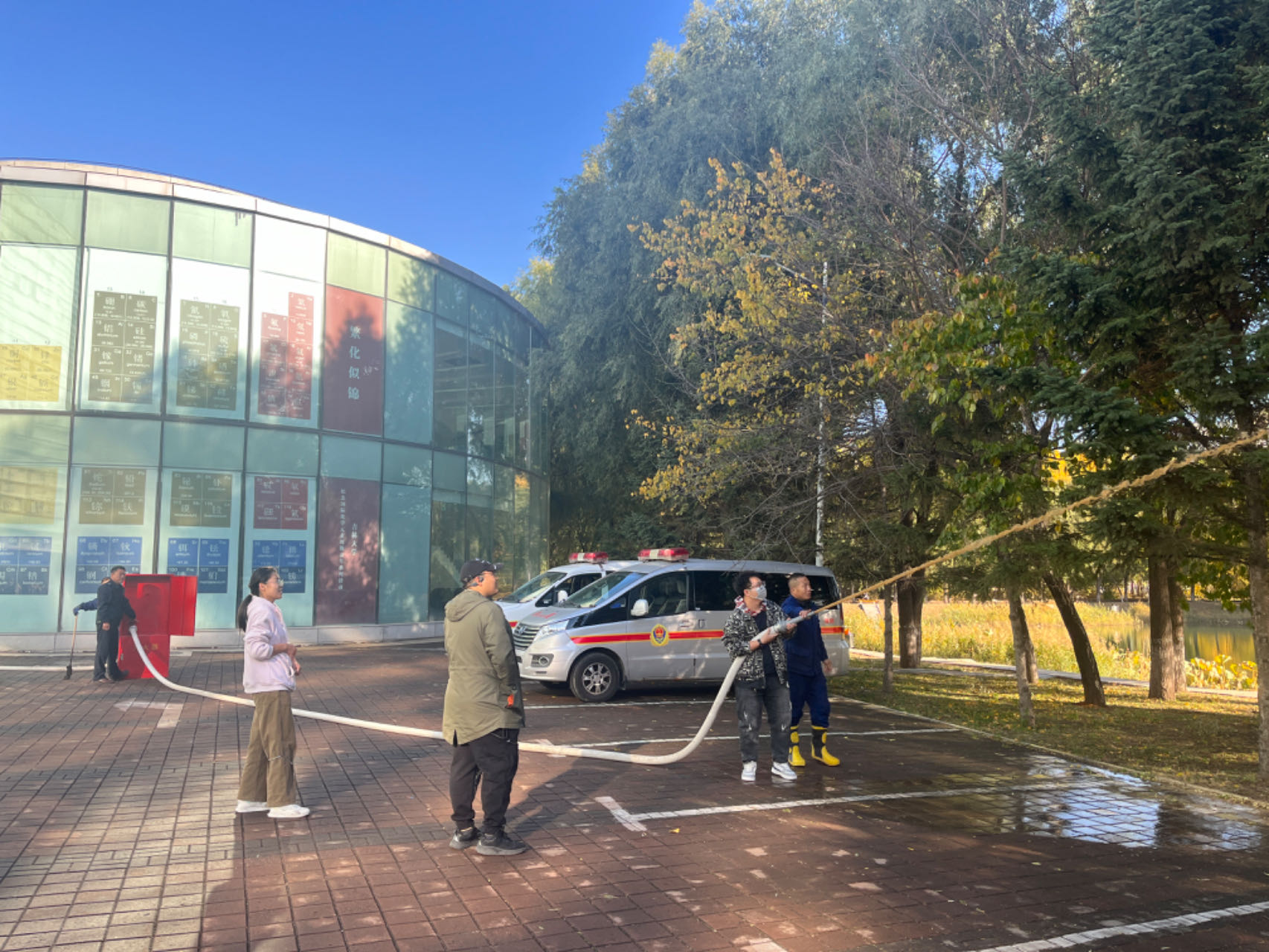 在消防器材使用培训环节,保卫处消防科董立明老师详细讲解并演示了消火栓、灭火毯、二氧化碳灭火器、干粉灭火器、推车式灭火器等消防器材的正确使用方法,在场员工30余人次参与消防器材的学习和使用。