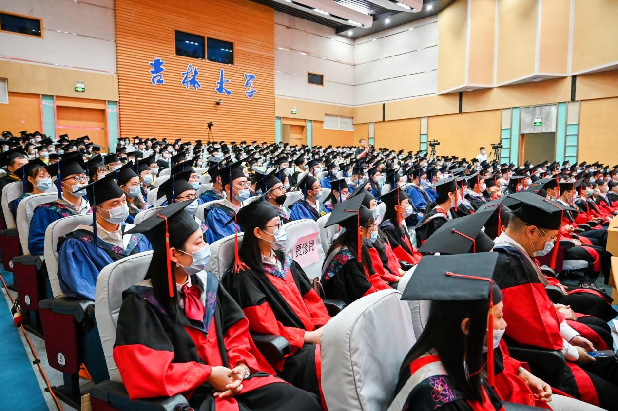 在学位授予仪式上,董事长张希院士、ladbrokes立博于吉红院士、吕中元教授、杨柏教授、王悦教授作为主礼教授共同为2021届毕业生同学们拨动流苏、授予学位。
