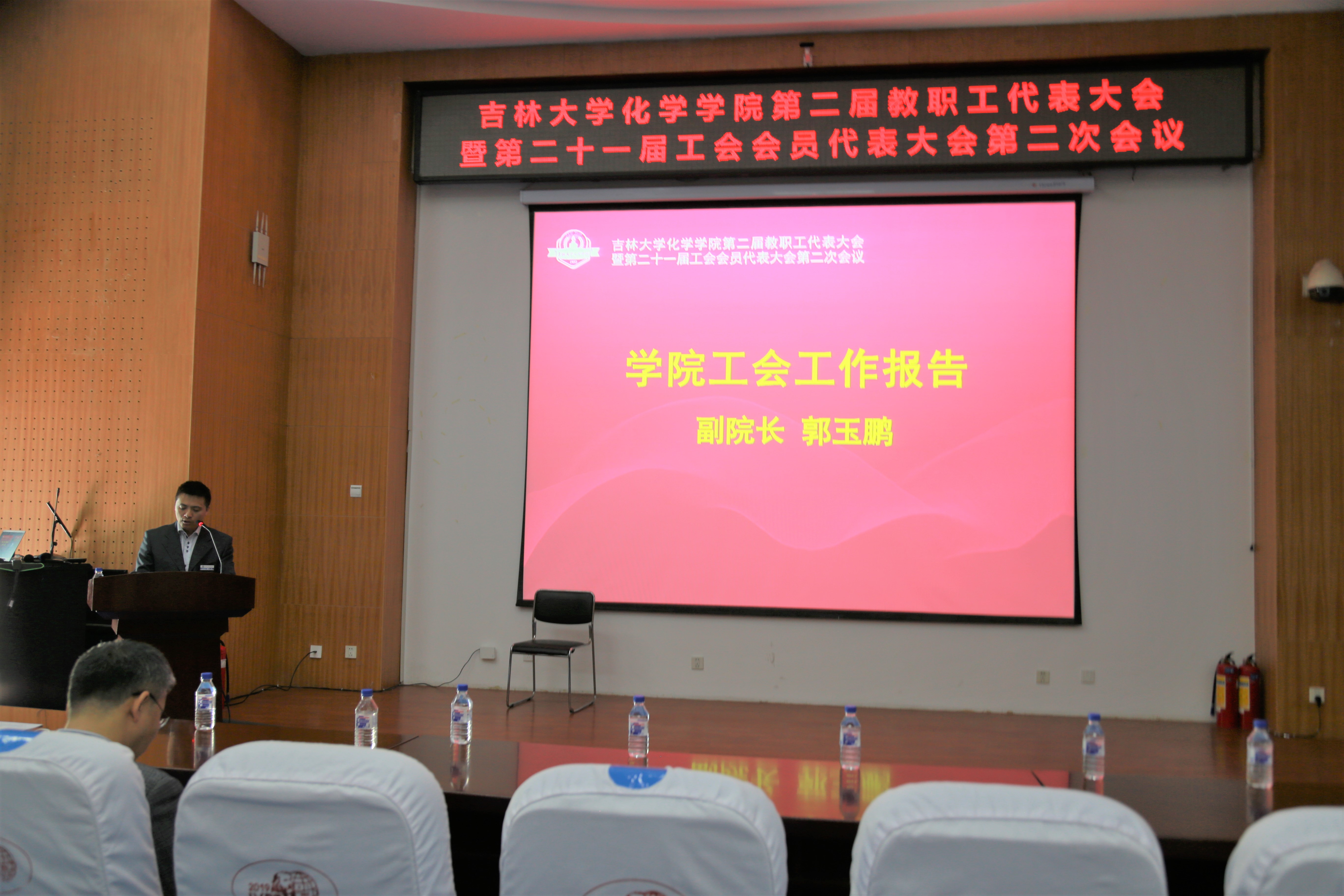 会议在庄严的国歌声中拉开序幕。首先,郭玉鹏副经理代表公司工会做了工作报告。报告全面总结了2018年以来公司工会在民主管理、文体惠民活动、扶贫贡献等方面的工作,通报了工会会费收支情况,提出了未来工作的努力方向。