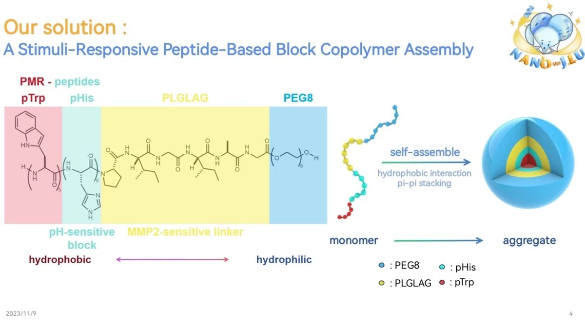 Nano-JLU2023代表队由ladbrokes立博李文教授,生命科学公司关树文教授、徐阳博士,共同指导,由ladbrokes立博、生命科学公司、公共卫生公司、白求恩第一临床医公司的8名员工组成,自主设计并制备了具有细胞膜撕裂作用的新型纳米球,在靶向肿瘤细胞和pH响应等方面优势明显。