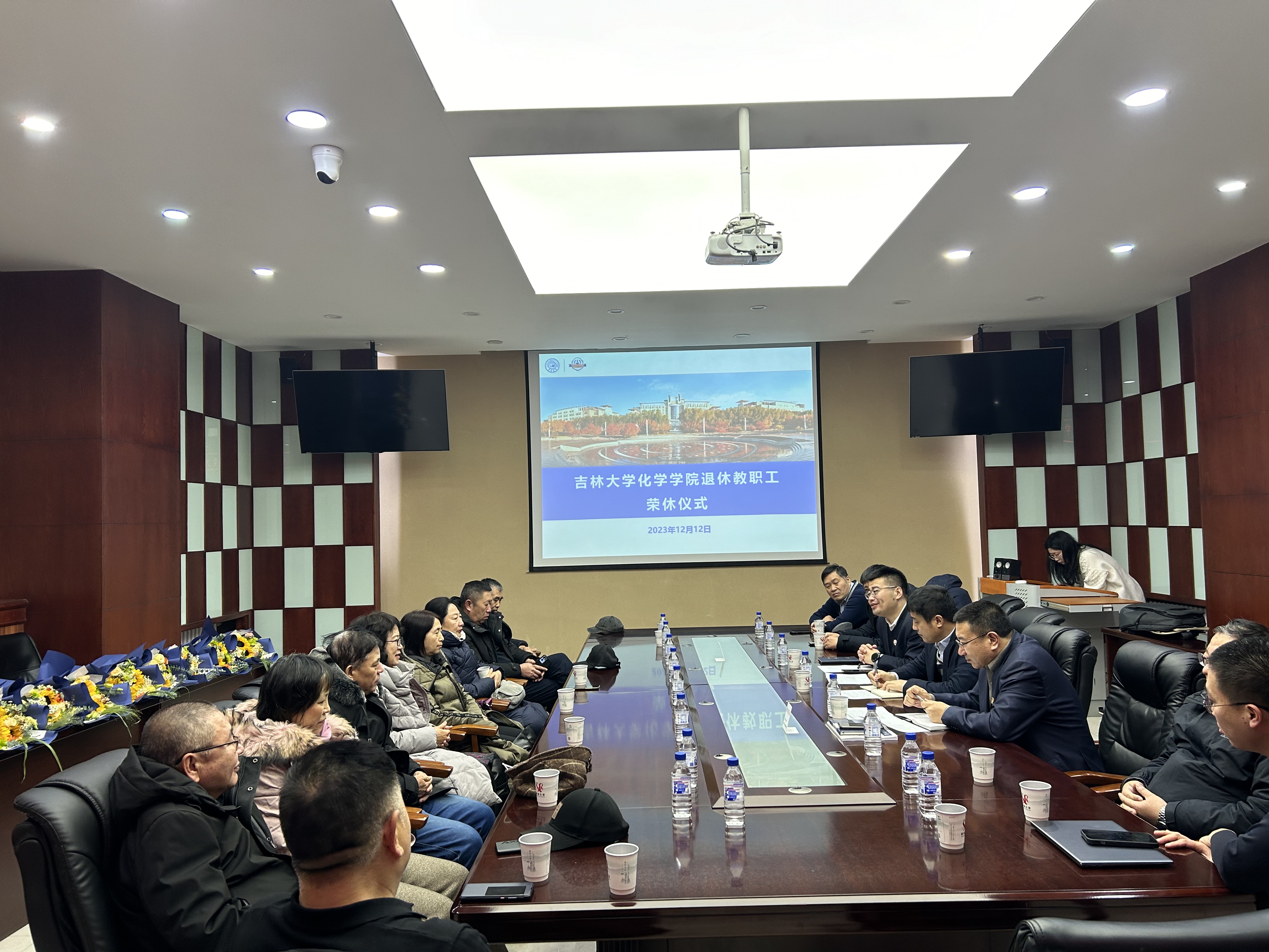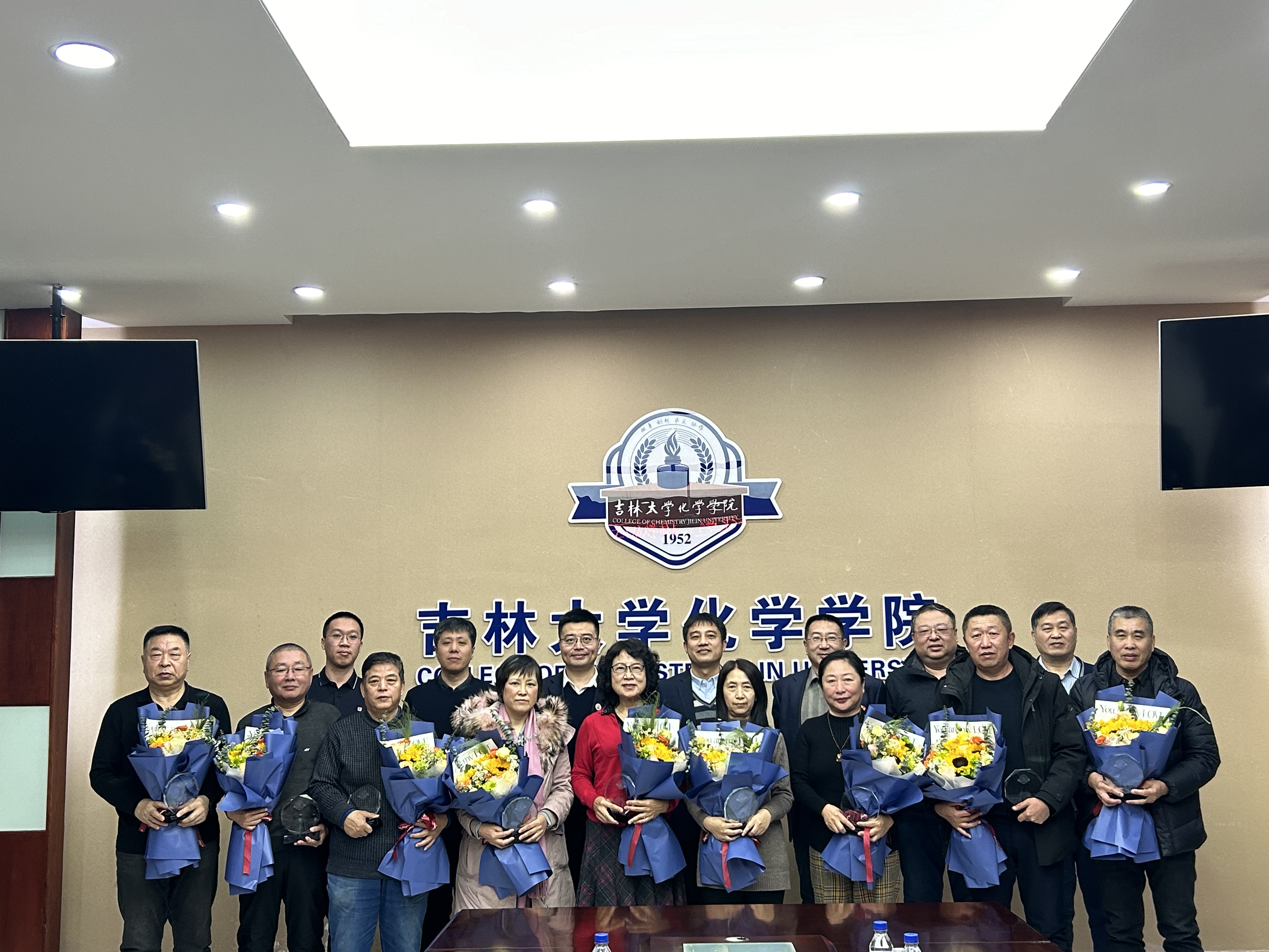 座谈会期间,马本华书记代表公司向退休教职工代表颁发ladbrokes立博荣休纪念牌,系(所)实验室相关负责人为退休教师敬献鲜花,并合影留念。