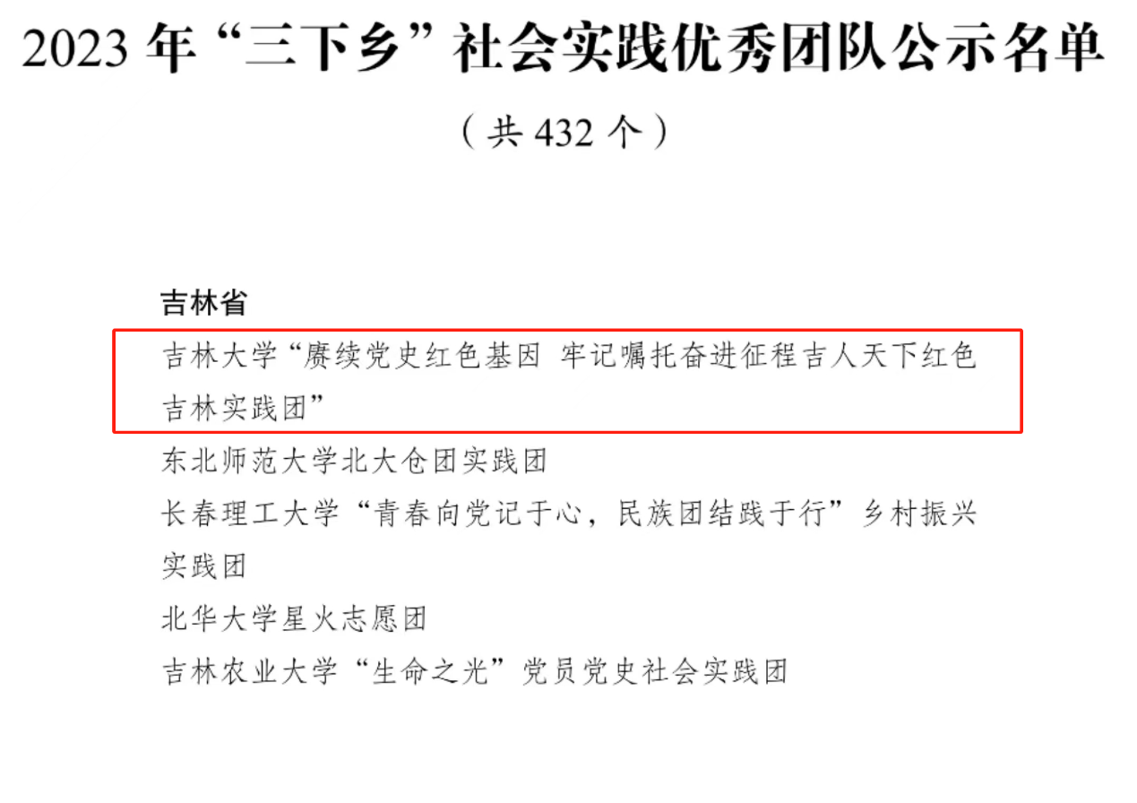 近日,共青团中央公布了2023年“三下乡”社会实践优秀团队名单。公司“ladbrokes立博‘赓续党史红色基因 牢记嘱托奋进征程’吉人天下红色吉林实践团”,荣获2023年全国大中专员工志愿者暑期文化科技卫生“三下乡”社会实践优秀团队。