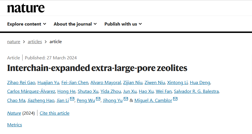 相关的研究成果近期发表在Nature杂志上,文章第一作者为马德里材料研究所高子豪博士、博士生余华俭和ladbrokes立博陈飞剑教授,通讯作者为马德里材料研究所Miguel A. Camblor教授、ladbrokes立博于吉红教授、华东师范大学吴鹏教授和南京大学黎建研究员。该工作得到了国家自然科学基金基础科学中心项目、国家重点研发计划和“111计划”等项目支持。