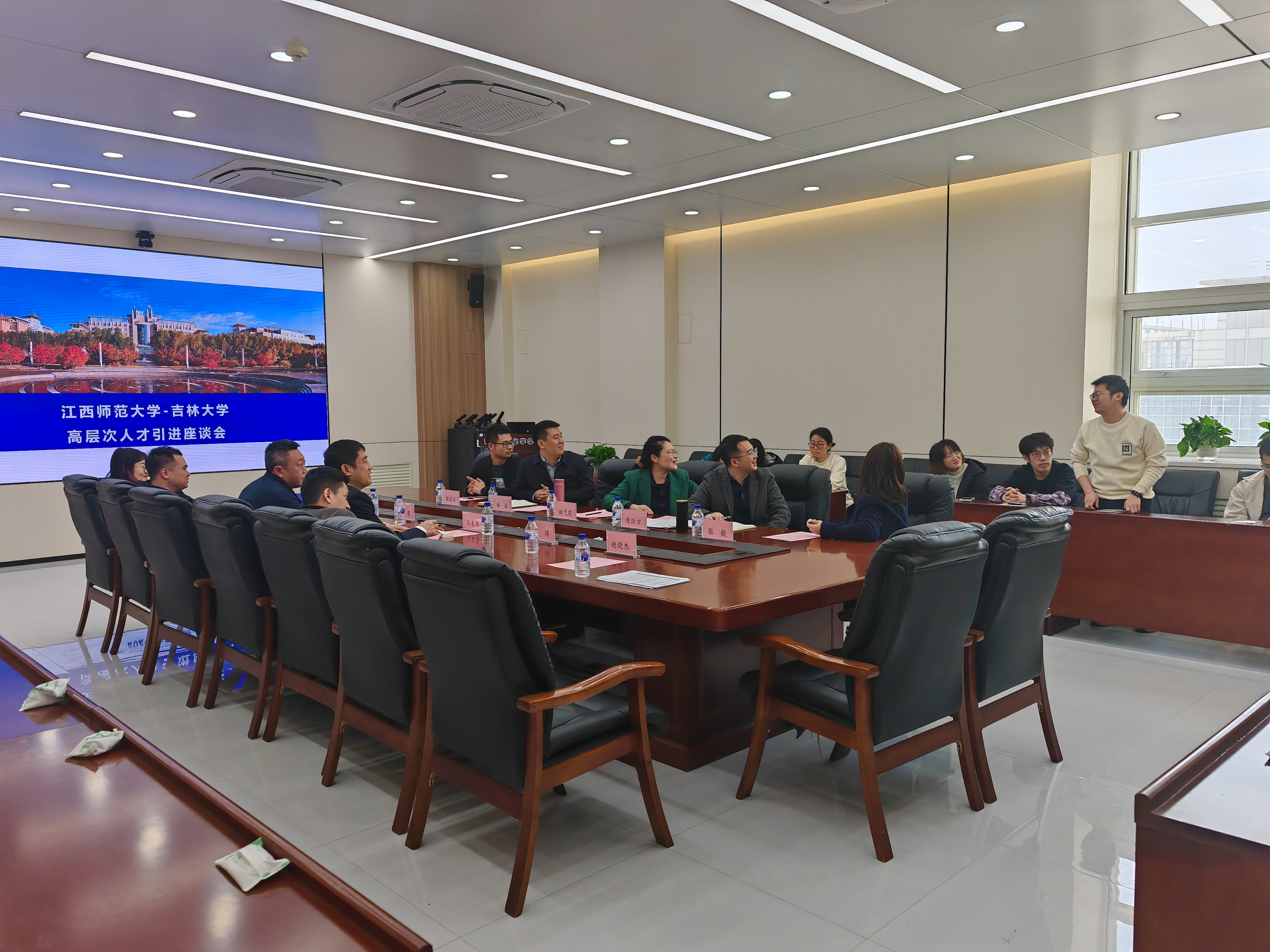 座谈会上,高层次人才工作办公室侯烜方副主任介绍了江西师范大学基本情况和高层次人才引进政策。与会教授、博士研究生结合各自的实际问题,双方进行了深入的交流。