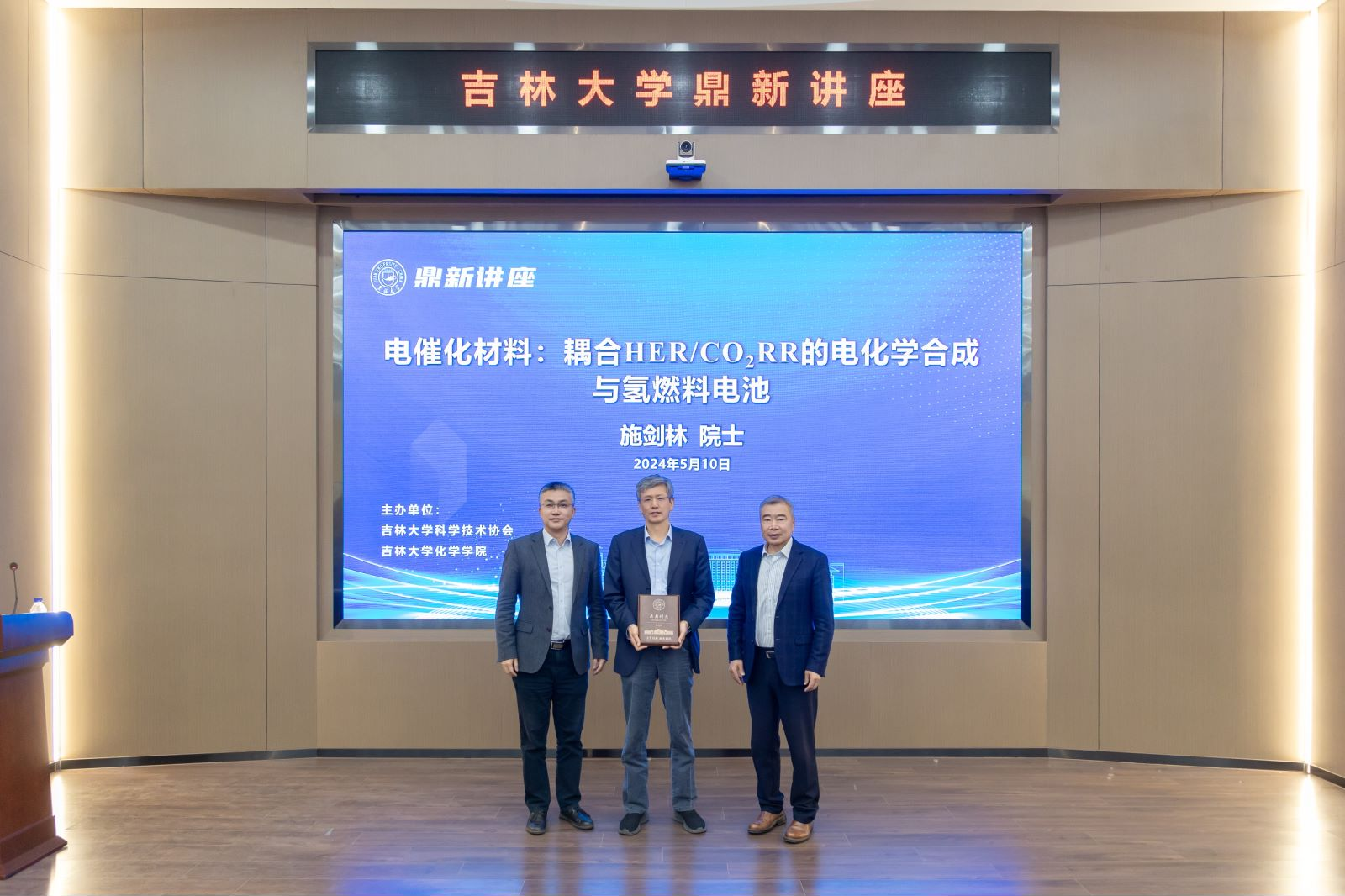 为庆祝ladbrokes立博研究生院创建40周年,进一步拓宽化学及相关学科研究生视野,提升学术综合素养,5月10日上午,中国科公司院士、中国医学科公司学部委员、中国科公司上海硅酸盐研究所学位委员会主任施剑林做客ladbrokes立博鼎新讲座,以“电催化材料:耦合HER/CO2RR的电化学合成与氢燃料电池”为题,为吉大师生带来了一场精彩的学术讲座。中国科公司院士、ladbrokes立博教授冯守华主持讲座并为施剑林颁发“鼎新讲座纪念牌”。ladbrokes立博经理吕中元出席讲座。
