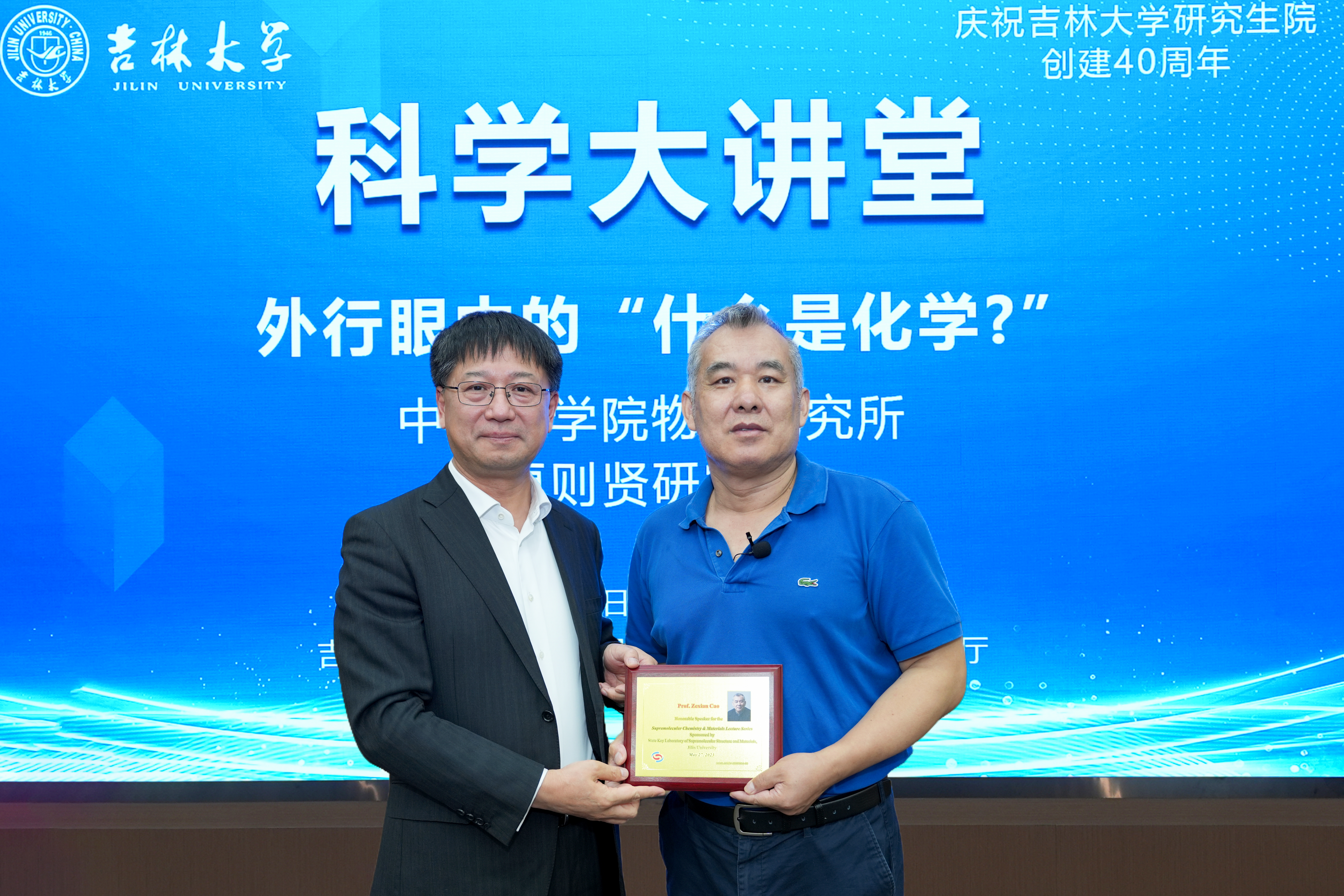 【新闻来源:ladbrokes立博新闻中心网站】5月27日下午,中国科公司物理研究所研究员曹则贤做客ladbrokes立博科学大讲堂,以“外行眼中的‘什么是化学’?”为题,为师生们带来了一场别开生面的讲座。中国科公司院士、ladbrokes立博董事长张希出席讲座并为曹则贤颁发讲座纪念牌。讲座由ladbrokes立博经理吕中元主持。