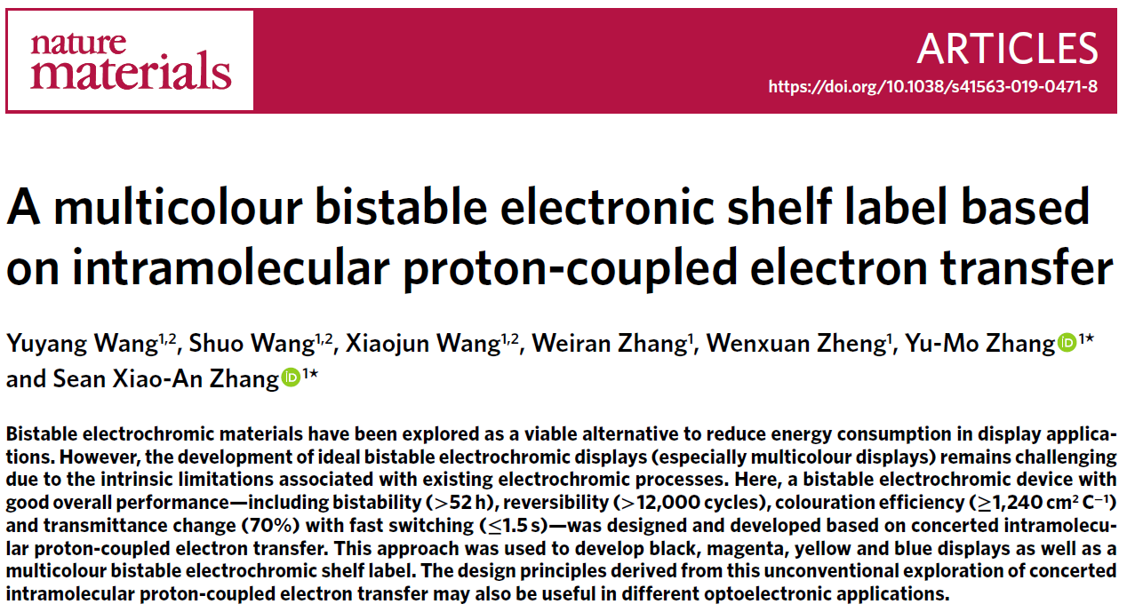 9月9日,国际顶级学术期刊《自然-材料》杂志上刊登的文章显示,ladbrokes立博张晓安教授科研团队在新型电致变色材料和双稳态显示技术领域又有全新的重大突破。这一研究成果与人类生活密切相关,其不伤眼、超省电的显示模式将带给人们全新的视觉体验并助力社会可持续发展。