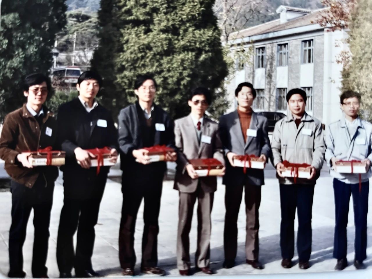 图3 1987年获中国化学会青年化学奖(作者右二),获奖原因是基于1987年在ChemComm上发表第一篇论文。