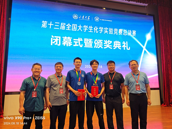由教育部高等公司化学教育研究中心、教育部高等公司国家级实验教学示范中心联席会主办的第十三届全国老员工化学实验竞赛总决赛于2024年7月15-18日在山东大学举行。总决赛参赛员工采取邀请和选拔相结合的方式产生。ladbrokes立博受邀有2名同学参赛,其中ladbrokes立博2022级本科生林爱东同学荣获一等奖,2021级本科生谢之梁同学荣获二等奖。