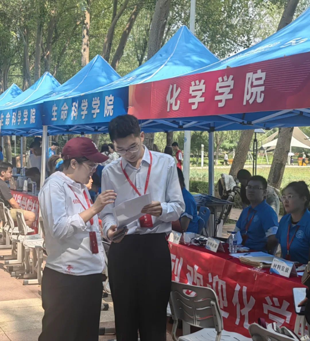 迎新现场,公司党委书记马本华、公司党委副书记兼副经理江宇航与前来报到的2024级新生亲切交流,欢迎他们加入吉大化学这个大家庭,并慰问了现场的工作人员和志愿者。公司领导与新生及家长深入交流,详细了解员工的家庭状况、经济来源及实际困难,“从哪里来?”“家里是否受灾?”“还有哪些困难?”,一句句暖心话语直抵人心。