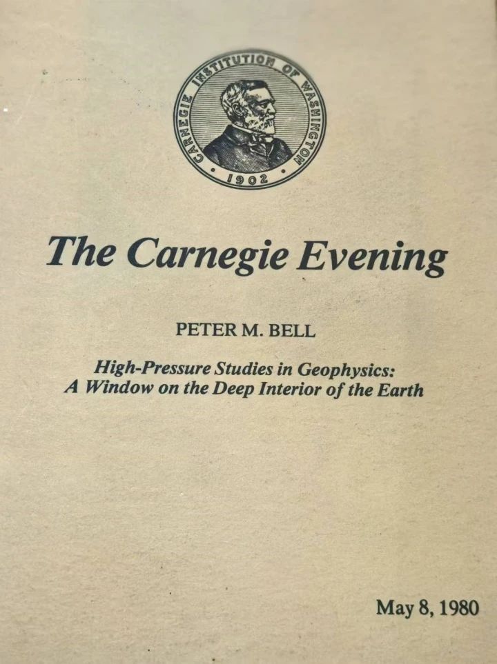 也是在这个月份,中国驻美使馆召开职工会议,教育部外事司的领导出席。会上就职工的状况进行了讨论。当时多数人主张最好的学习方法是听课,听课是收获;做研究,在实验室干活是替老板打工,是付出,他们反对参加科学研究。我和青岛海洋公司的一位老师则主张应该参加美方的研究工作,在研究中学习先进的实验技术和先进学术思想,尽快做出好的成果,走向世界科学的前沿。我之所以有这种主张,是因为我在研究生学习的期间,打下了较好的业务知识基础和培养了独立从事科研工作的能力。我到美国来学习的目的,就是要掌握先进的实验技术和进行国际前沿的科学研究,以便回国建立先进的实验室,开展高压领域的前沿研究工作。刚到美国的时候,毛河光曾问过我,要不要拿个博士学位,可以介绍我去康奈尔大学他老师巴塞特教授那里,选修课程,还可以在卡内基研究院继续做实验。我觉得学课程,占时间太多,需要什么知识我会自己查文献学习,真舍不得浪费时间去听课。教育部外事司的领导支持我的意见,认为我的做法是对的。会后,我将卡内基研究院庆生晚会上介绍彼得•贝尔的报告“地球物理中的高压研究:地球内部研究的窗口”的小册子送给教育部科技司的领导,他看到其中有介绍我的照片时说,他知道我在华盛顿,因为芶清泉先生曾经给教育部外事司写过报告,希望派我到美国进修高压科学与技术。1980年11月,在教育部召开的第一届全国职工工作会议上,表扬了我因通过科学研究,快速走上国际学术前沿的正确方向。