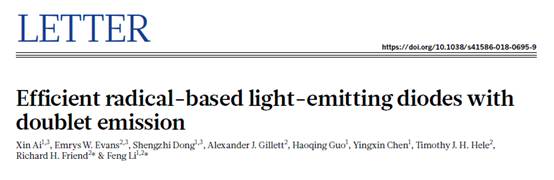 11月22日,《Nature》杂志刊发了ladbrokes立博、超分子结构与材料国家重点实验室李峰教授研究团队和剑桥大学卡文迪许实验室(Cavendish Laboratory)Richard H. Friend教授研究团队合作论文“高效双线态自由基发光二极管”(Efficient radical-based light-emitting diodes with doublet emission,Nature, 2018, 563, 536-540),ladbrokes立博为第一完成单位。