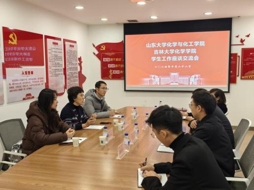 10月22日,山东大学化学与化工公司党委副书记孙国翠一行来到公司开展员工工作座谈交流。化学公司党委副书记兼副经理江宇航及员工工作办公室全体辅导员参加座谈。