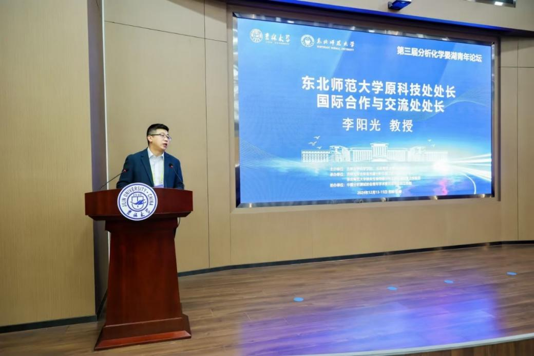 李阳光在致辞中介绍了东北师范大学的办校历程和化学团队建设成果,并期待此次论坛可以为专家学者、科研人员以及青年学者搭建一个多方位的学术交流平台,促进知识的交流与合作,激发创新思维,共同推动分析化学领域的科技进步。