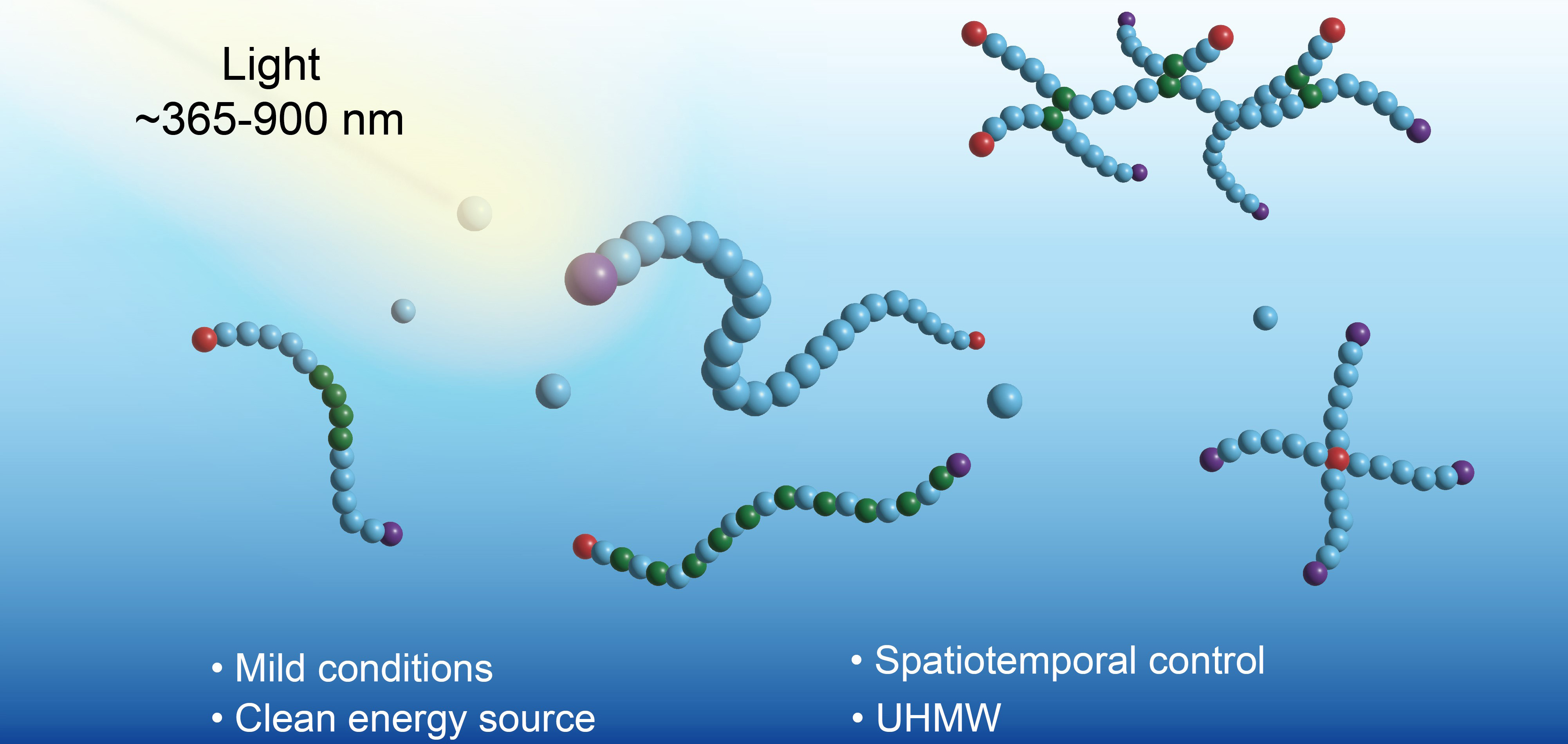 ladbrokes立博超分子结构与材料全国重点实验室安泽胜研究组在Nature Synthesis上发表题为Photocontrolled radical polymerization for the synthesis of ultrahigh-molecular-weight polymers的综述文章,讨论了光控自由基聚合的机理、优势、以及结构规整超高分子量聚合物在先进材料中的应用。