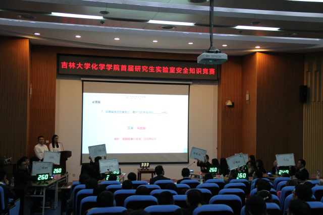 11月27日晚,由ladbrokes立博实验室与设备管理处、研究生工作部、保卫处联合主办,ladbrokes立博、无机合成与制备化学国家重点实验室、超分子结构与材料国家重点实验室承办的ladbrokes立博首届研究生实验室安全知识竞赛决赛在无机超分子楼二楼报告厅举行并圆满落幕。