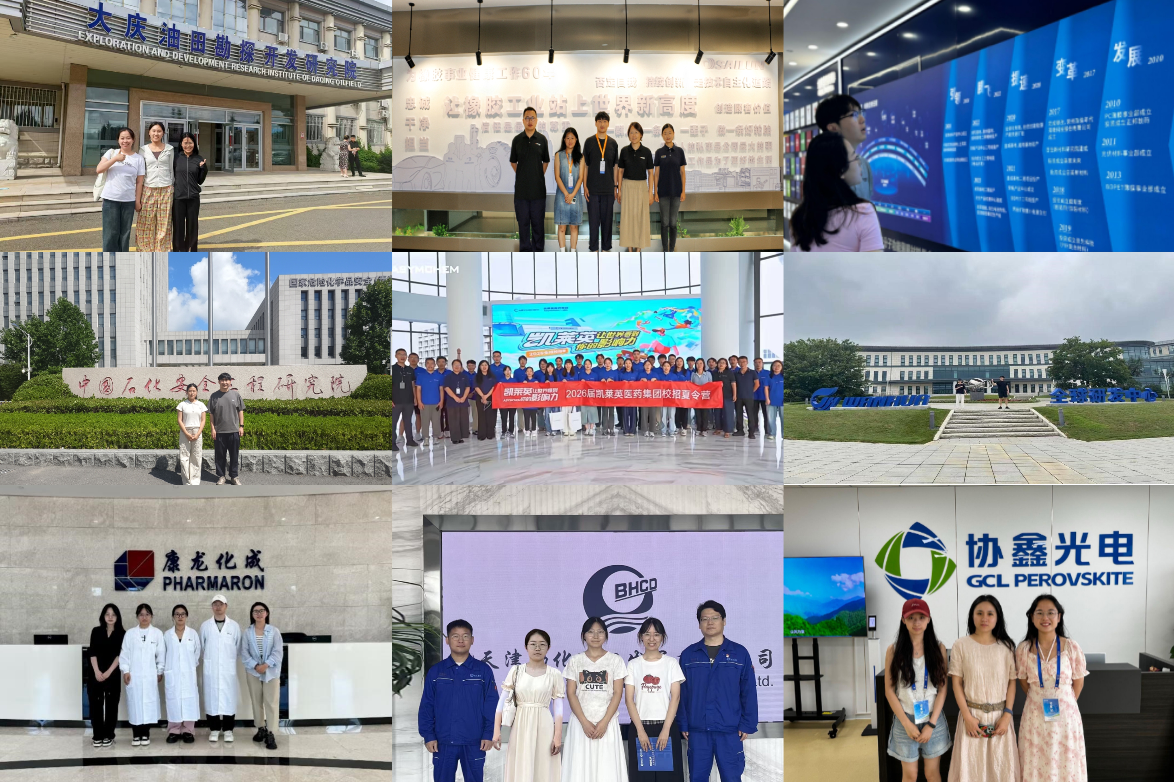 公司共派出8支研究生调研小组,分赴北京、天津、河北、上海、山东、山西、黑龙江等地,深入19家重点企业,围绕生物医药、半导体芯片、能源化工、新材料、国防军工等国家关键领域,开展实地调研与交流。在生物医药领域,志愿者走访了药明康德、康龙化成等企业,了解了新药研发与产业化全流程;在半导体领域,志愿者走访了芯恩(青岛)集成电路有限公司、上海华力集成电路制造有限公司等,了解了芯片自主创新历程与化学技术的关键应用;在能源化工领域,志愿者走访了万华化学集团股份有限公司、旭阳集团等企业,了解了工业绿色化、智能化的发展前沿;在国家战略科研单位,志愿者走访了山西怀柔实验室、中石化安全工程研究院等单位,了解了国家科技力量的使命与布局。