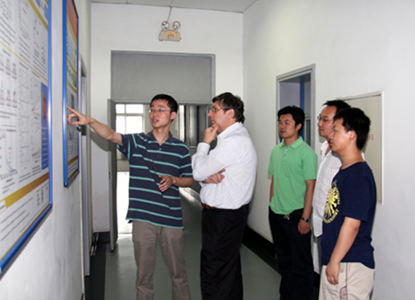 图2 中国科公司2009年度“爱因斯坦讲席教授”获得者英国曼彻斯特大学A. K. Geim教授(2010年诺贝奖物理奖获得者)在金属所学术访问——向Geim教授介绍团队在Direct Z-scheme光催化材料研究工作。
