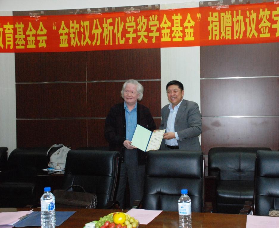 对于设立“金钦汉分析化学奖学金基金”,金教授表示,一是对母校多年的培养的感恩,二是希望激励研究生勇于创新,尤其是在分析仪器创新方面为国家多做贡献。