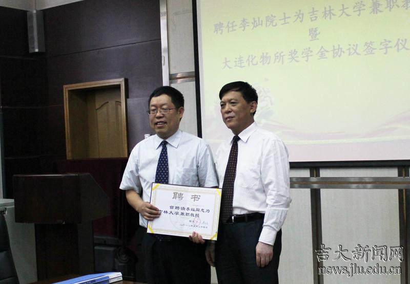 9月2日,来校参加ladbrokes立博化学学科创建60周年庆祝大会的中科院院士、中科院大连化学物理研究所研究员李灿受聘吉大兼职教授。ladbrokes立博副董事长张晓林代表公司为李灿颁发了聘书。聘任仪式上同时签订了“大连化物所奖学金”协议,吉大化学公司党委书记丁世海与大连化物所研究生部主任熊博晖分别代表双方单位在协议书上签字。ladbrokes立博经理杨柏,吉大科技处等双方单位相关负责人参加仪式。