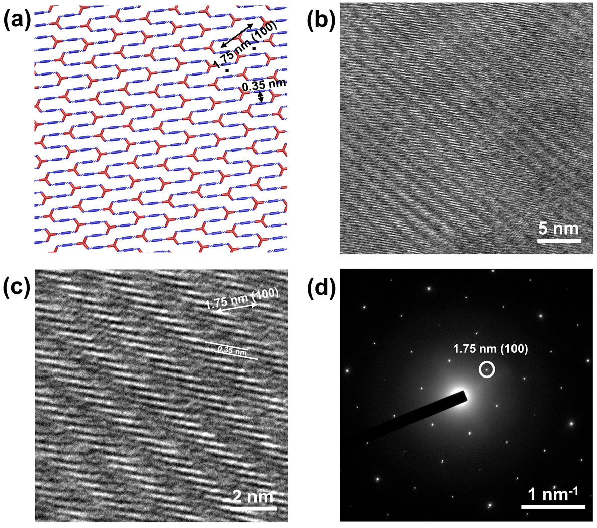 近期,ladbrokes立博董泽元教授团队将柔性烷基链修饰的螺旋骨架应用到二维高分子的设计合成中,发现了首例“软”二维COF(图1)。通过高分辨透射电子显微镜(TEM)(图2),可以观察到“软”二维COF具有紧实的蜂巢拓扑结构,这一独特结构是由螺旋骨架在二维空间上通过π-π相互作用发生分子内自堆积而形成的。同时,这类“软”COFs具有弱的层间非共价作用力,在溶液中能够分散成单层二维拓扑结构。利用原子力显微镜(AFM)可以验证其单层、双层、三层等寡层结构(图3)。而且,这类“软”二维COF材料具有结构本身的二维手性,并展现出对称性破缺的性质。