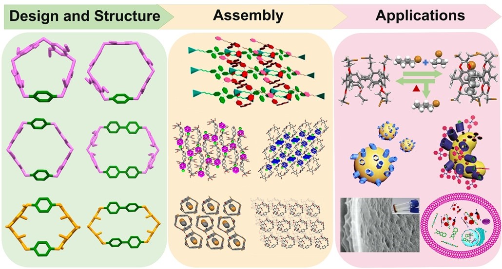 设计与合成结构多样化且兼具优良性质和功能的大环分子受体始终是超分子化学与材料领域的重点研究内容之一,同时也是推动有机功能材料和智能超分子系统蓬勃发展并走向实际应用的重要环节。近几年来,ladbrokes立博、纳微构筑化学国际合作联合实验室杨英威教授课题组在柱芳烃衍生的新型大环芳烃受体的设计合成及其超分子材料构筑与功能开发等方面取得了系统性的研究进展。