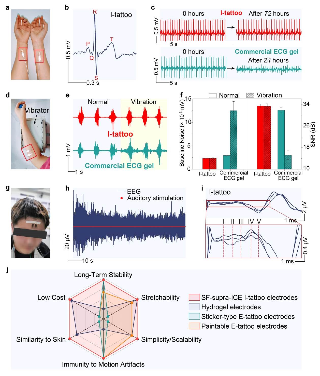 I-tattoo作为超适形皮肤电极用于人体电生理信号采集监测