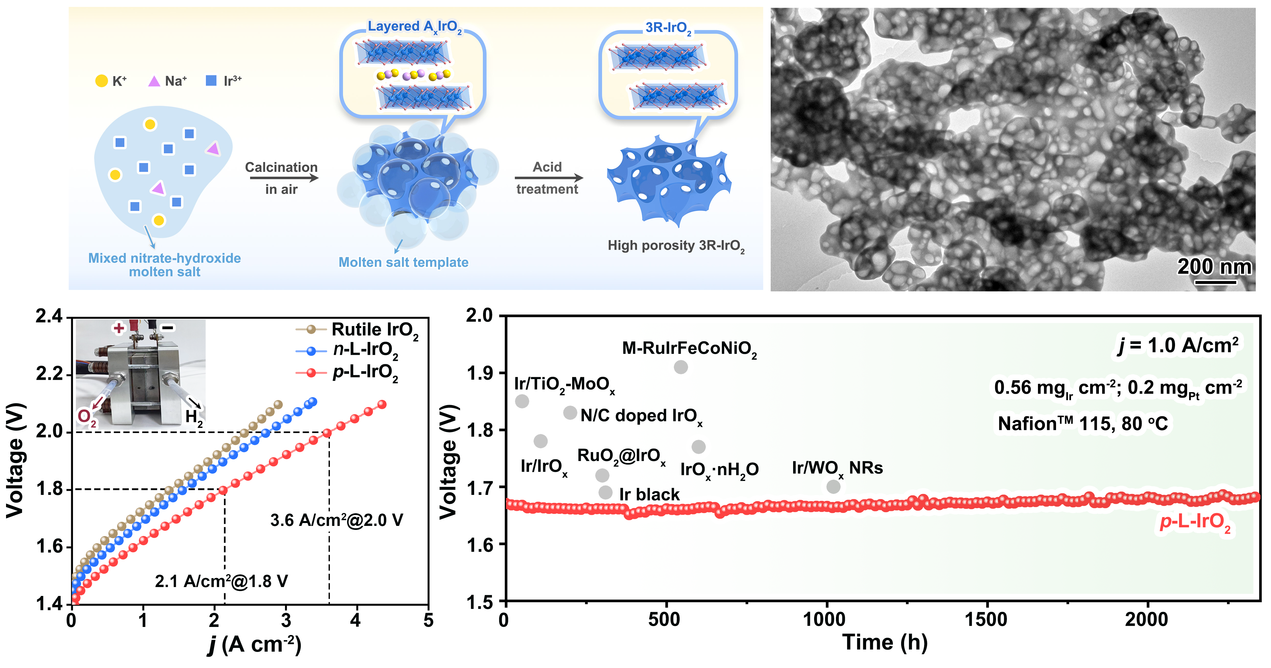 图:高孔隙率氧化铱催化剂的合成、形貌及电解槽性能