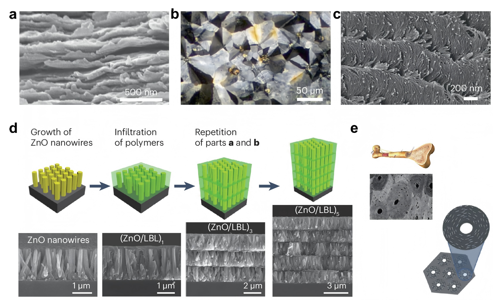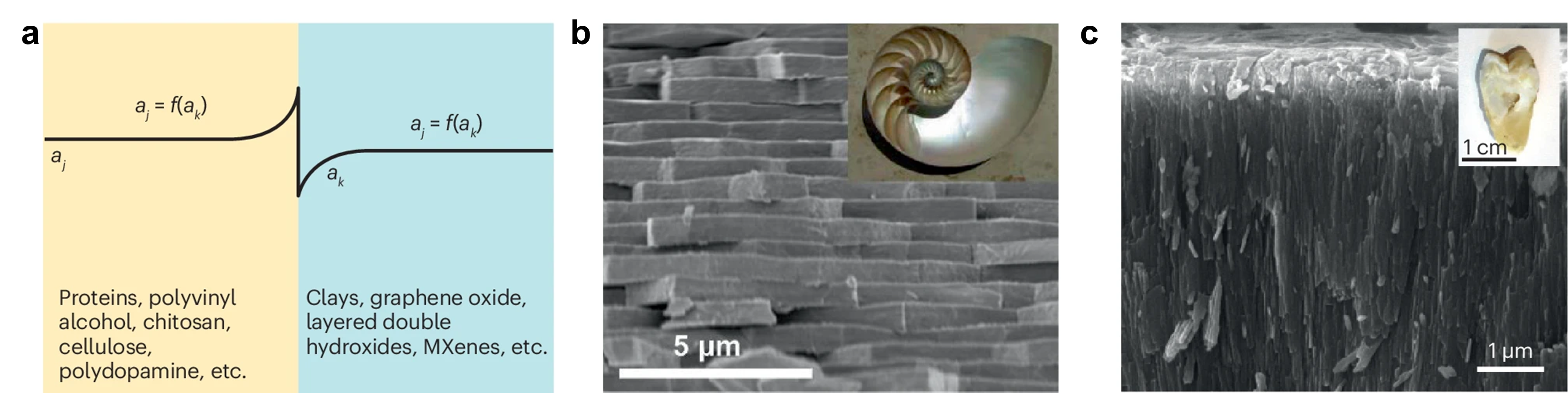 仿生学是工程领域的重要概念,基于对生物原型的组成、结构和功能的模仿,建立分子、材料、工艺和设备的设计原则。随着社会的发展,对兼具多种特性材料的需求持续增加,进一步推动了仿生(纳米)结构领域的巨大发展。这些材料结合了有序和无序的特点,使得它们的结构复杂化,因此难以定量描述和复制。目前,基于人工合成分子和纳米构造基元,人们可以模仿复制生物组织的结构,并成功开发了许多高性能纳米复合材料。但是,为了满足在能源、水、健康等领域对具有更高性能材料的需求,仍需要快速推进材料设计过程,建立多维属性评估体系。因此,亟需从传统的仿生学向定量仿生学发展。