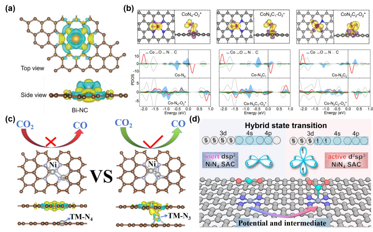 图4 单原子活性位点和基底的轨道杂化和杂化构型