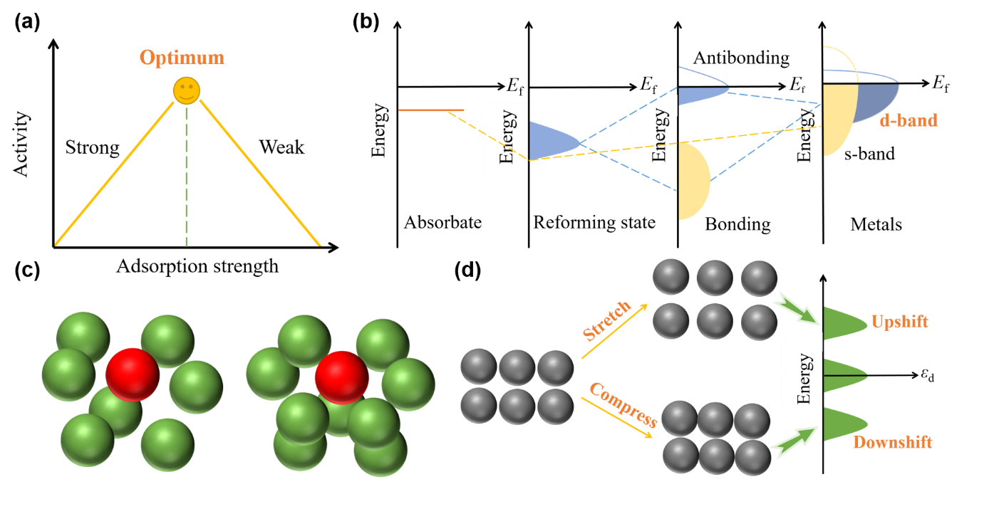 首先,介绍了Sabatier原理和与过渡金属催化相关的d轨道理论,分析了催化中过渡金属与被吸附物的轨道杂化过程,从过渡金属的种类和配位环境两方面总结了对过渡金属d带中心的影响,进而影响被吸附物与过渡金属的轨道杂化的有效程度,最终影响反应的吸附能和催化效果。同时,主要介绍了分波态密度(PDOS)、分子轨道、晶体轨道汉密尔顿群(COHP)和电荷密度差四种常见的轨道杂化描述符,定量直观地描述轨道杂化,对轨道杂化进行清晰有力的阐述,从而有助于从微观层面深入理解和分析SACs的催化活性和催化机理。