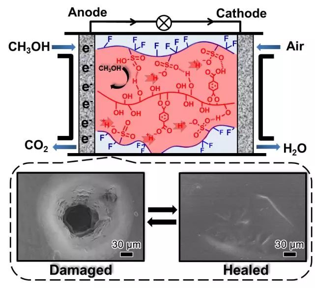 图1. 用于甲醇燃料电池的自修复质子交换膜