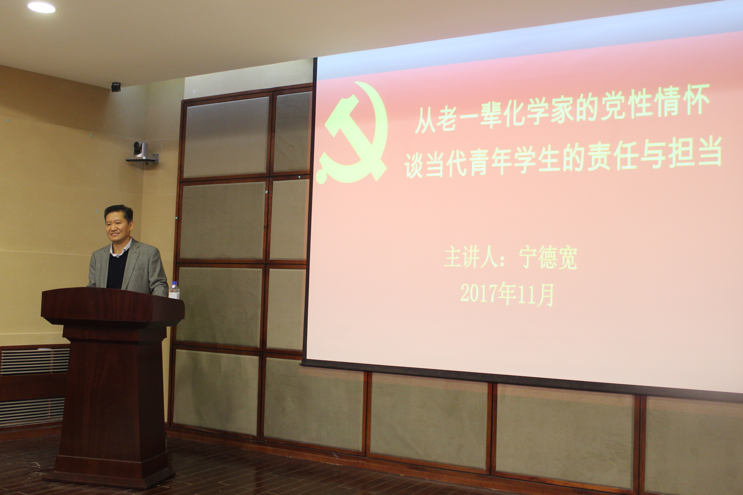 11月4日,化学公司党委书记宁德宽老师以《从老一辈化学家的党性情怀谈当代青年员工的责任与担当》为题为员工党员讲授党课。
