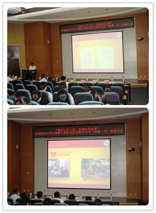 2015年6月30日,化学公司党委在无机超分子楼二楼圆形报告厅举行了庆祝建党94周年重温入党誓词仪式暨2015年“两优一先”表彰大会。副处级以上党员领导干部、教工党员、员工党员代表等200余人参加了大会,会议由公司党委副书记李勇同志主持。