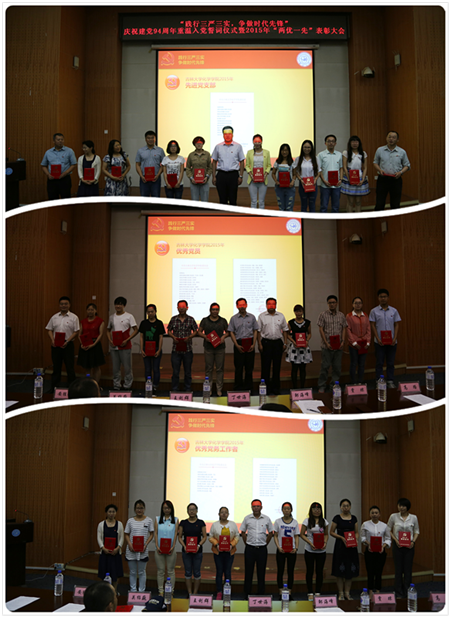 随后,院领导对受表彰的集体和个人颁发了荣誉证书。无机合成重点室教工党支部、分析南区研究生员工党支部等12个教工和员工党支部获先进党支部称号,于吉红、肖扬等65名师生党员获优秀共产党员称号,丁红、张媛等24名师生党务工作者获优秀党务工作者称号。