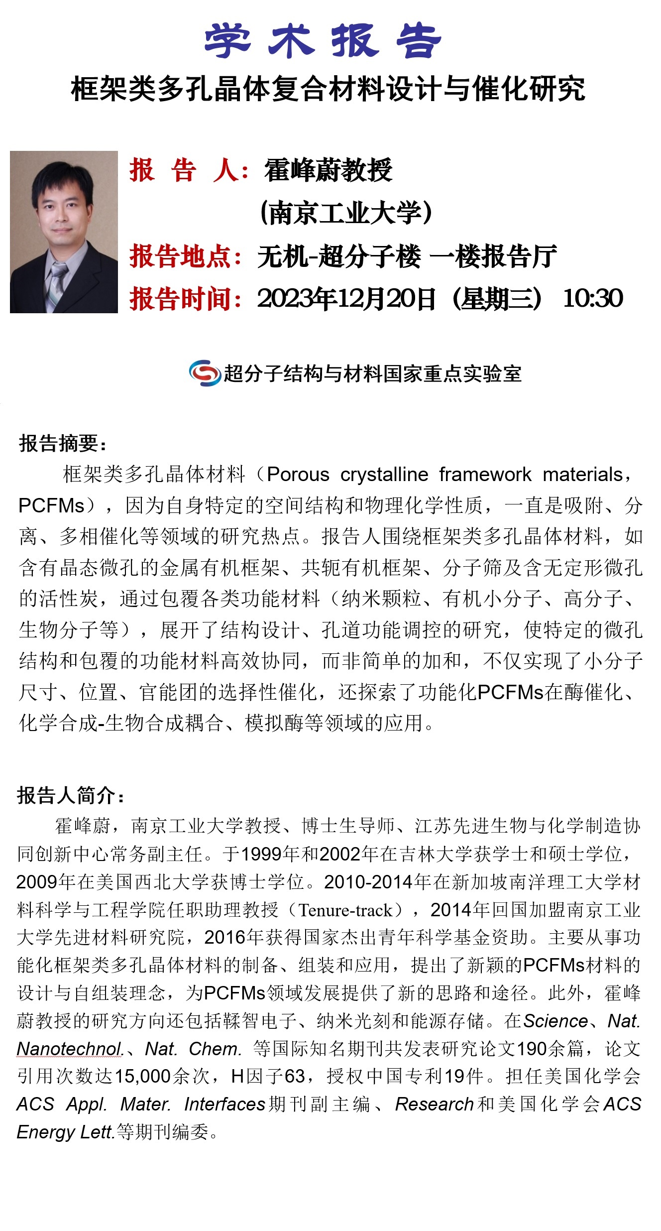 无机-超分子楼一楼报告厅