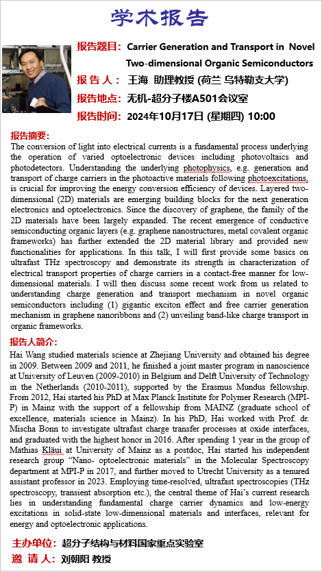 Carrier Generation and Transport in Novel Two-dimensional Organic Semiconductors