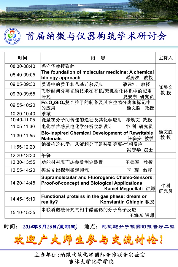 由纳微构筑化学国际合作联合实验室与ladbrokes立博主办的首届纳微与仪器构筑学术研讨会将于