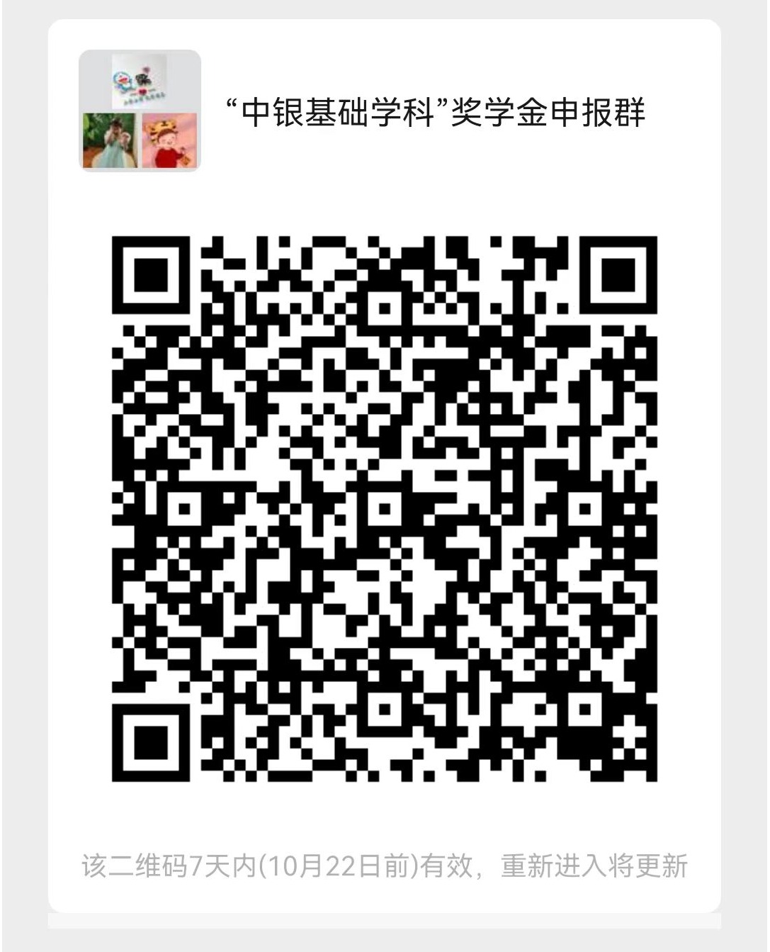 3. 申报人提交如下材料并扫码入群,2022年10月17日前将申报材料电子版发至邮箱chemdep@jlu.edu.cn,邮件及附件请体现“中银+姓名”