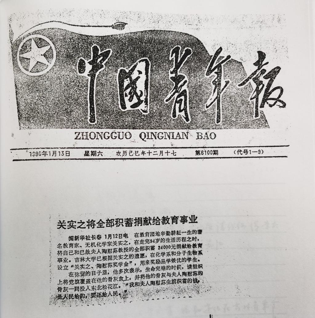 图16:1990年1月,《中国青年报》报道了关实之捐款事迹