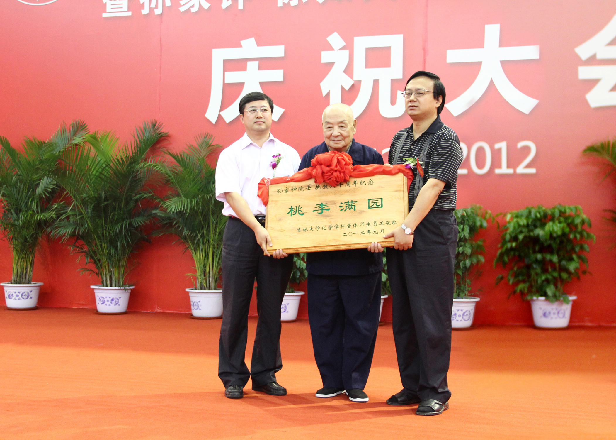 图20:2012年,ladbrokes立博为执教60年的孙家钟院士(中)授“桃李满园”牌匾